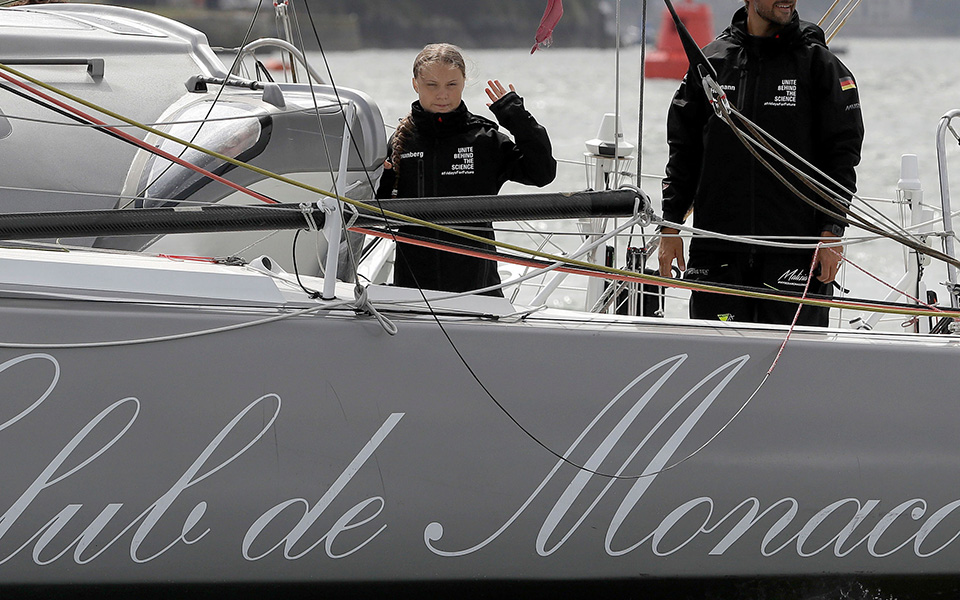 Η έφηβη Σουηδή ακτιβίστρια κατά της υπερθέρμανσης του πλανήτη Γκρέτα Τούνμπεργκ σάλπαρε σήμερα από την πόλη Πλίμουθ της Βρετανίας για τις ΗΠΑ, όπου θα παραστεί σε μια σειρά συνόδων για το κλίμα και σε διαδηλώσεις διαμαρτυρίας.