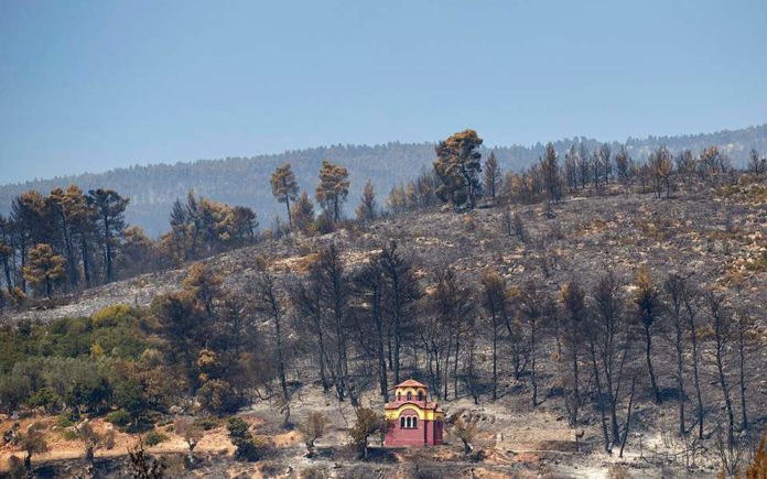 Καμένη έκταση στην Εύβοια. Σύμφωνα με στοιχεία του Εθνικού Αστεροσκοπείου, η συνολική έκταση που κάηκε στη χώρα μας από την 1η Μαΐου έως τις 5 Αυγούστου φέτος, ανέρχεται σε 22.790 στρέμματα, έναντι 105.400 στρεμμάτων κατά μέσον όρο την περίοδο 2008-2018.
