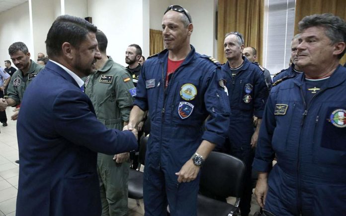 «Η συμβολή σας αποτελεί έμπρακτη ένδειξη των κοινών ευρωπαϊκών αξιών όπως η ευρωπαϊκή αλληλεγγύη και η προστασία της ζωής και της περιουσίας των Ευρωπαίων πολιτών», ανέφερε στον σύντομο χαιρετισμό του ο κ. Χαρδαλιάς και εξέφρασε τον θαυμασμό του για την προσπάθεια των Ιταλών και Ισπανών πιλότων, πάνω από την δύσκολη και επικίνδυνη πυρκαγιά της Εύβοιας.