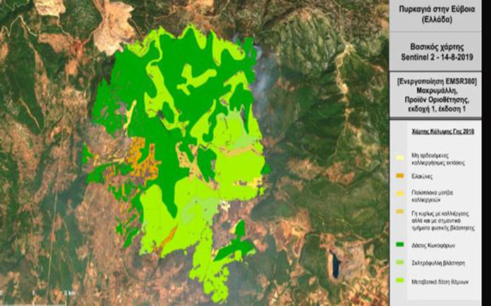 Την πρώτη χαρτογράφηση της γης που κάηκε στην μεγάλη πυρκαγιά της Εύβοιας αποτυπώνει το σύστημα Copernicus της ΕΕ. Από τη διαδραστική χαρτογράφηση του Copernicus αποκαλύπτεται και το ποσοστό δασικής έκτασης ή καλλιεργειών που κάηκαν στη μεγάλη πυρκαγιά.