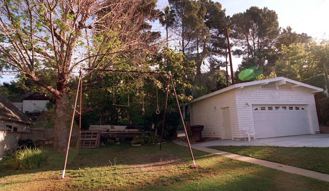 Η αυλή του σπιτιού όπου βρέθηκε σε άθλια κατάσταση το 1996