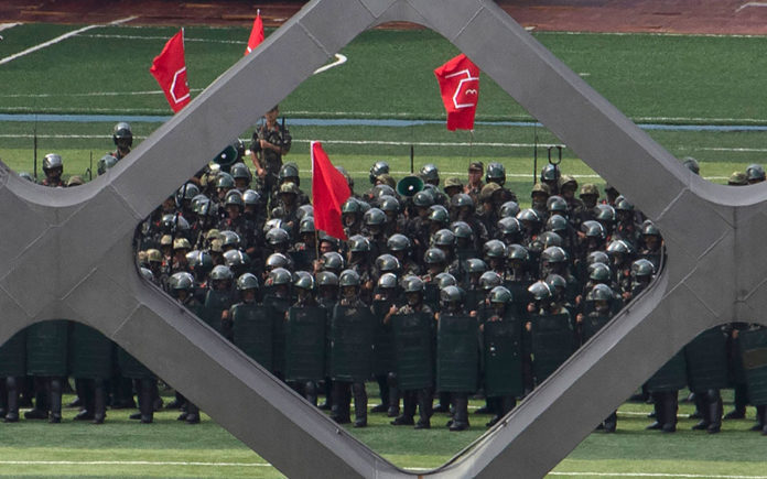 Ειδικές δυνάμεις της κινεζικής αστυνομίας συνεχίζουν τις ασκήσεις τους σε αθλητικές εγκαταστάσεις κοντά στα «σύνορα» με το Χονγκ Κονγκ.