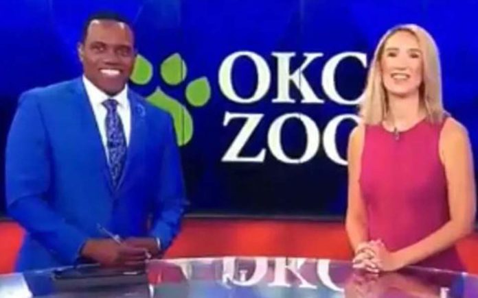 White TV anchor Alex Housden apologizes on air for saying her black KOCO TV co-anchor, Jason Hackett, looks like a gorilla at the Oklahoma City Zoo.pic.twitter.com/4N1BBs8o4K