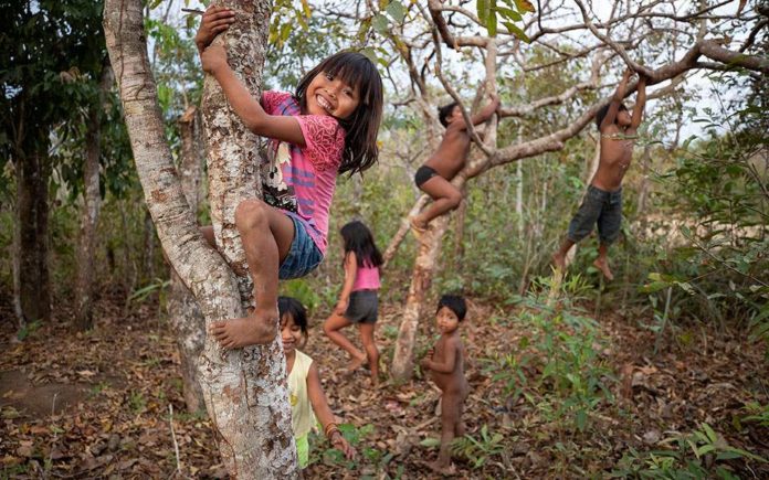Παιδιά της φυλής Ναμπικβάρα Σαράρε παίζουν στον Αμαζόνιο, στην πολιτεία Μάτο Γκρόσο.