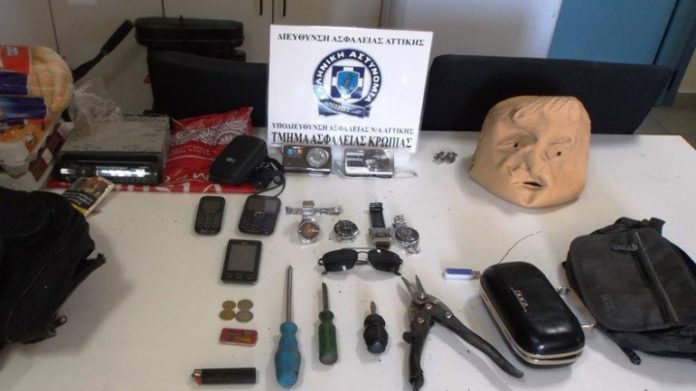 Μετά από έρευνα στην οικία του βρέθηκαν και κατασχέθηκαν διαρρηκτικά εργαλεία, μάσκα σιλικόνης και διάφορα κλοπιμαία.