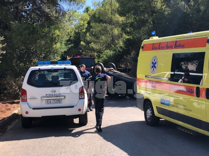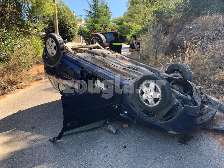 Τροχαίο ατύχημα σημειώθηκε λίγο μετά τις 11.30 το πρωί του Σαββάτου στη συμβολή των Θέτιδος και Έρσης στην Εκάλη, με αποτέλεσμα ένα ΙΧ να βγει από την πορεία του, να αναποδογυρίσει και να τραυματιστεί η συνοδηγός του.