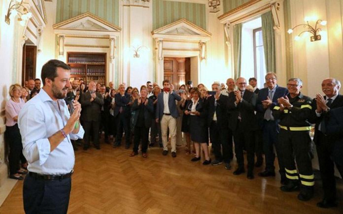 Τελετή αποχαιρετισμού πραγματοποίησε χθες ο Ματέο Σαλβίνι στο υπουργείο Εσωτερικών, στη Ρώμη.