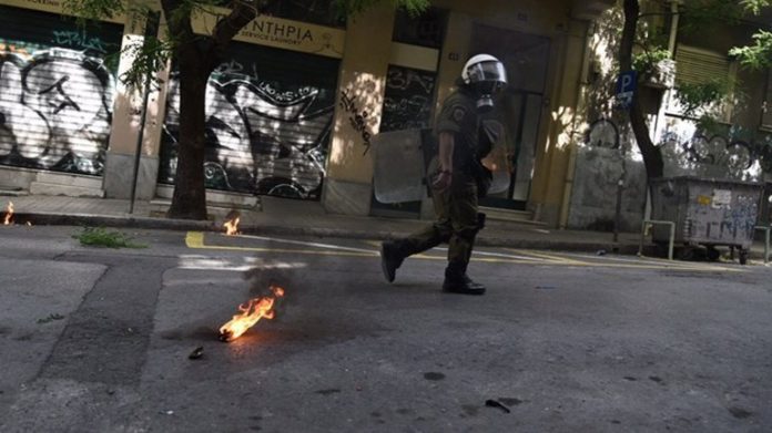 Στο σημείο εμφανίστηκαν περίπου 40 νεαροί, οι οποίοι άρχισαν να πετούν πέτρες και δύο βόμβες μολότοφ κατά των αστυνομικών.