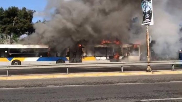 Φωτιά σε λεωφορείο στην Κηφισό – Με προβλήματα η κυκλοφορία των οχημάτων