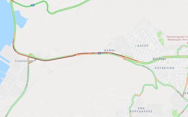 Λόγω του τροχαίου παρατηρούνται έντονα κυκλοφοριακά προβλήματα και στα δύο ρεύματα κυκλοφορίας στη Λεωφόρο Αθηνών στο ύψος του Δαφνιού.