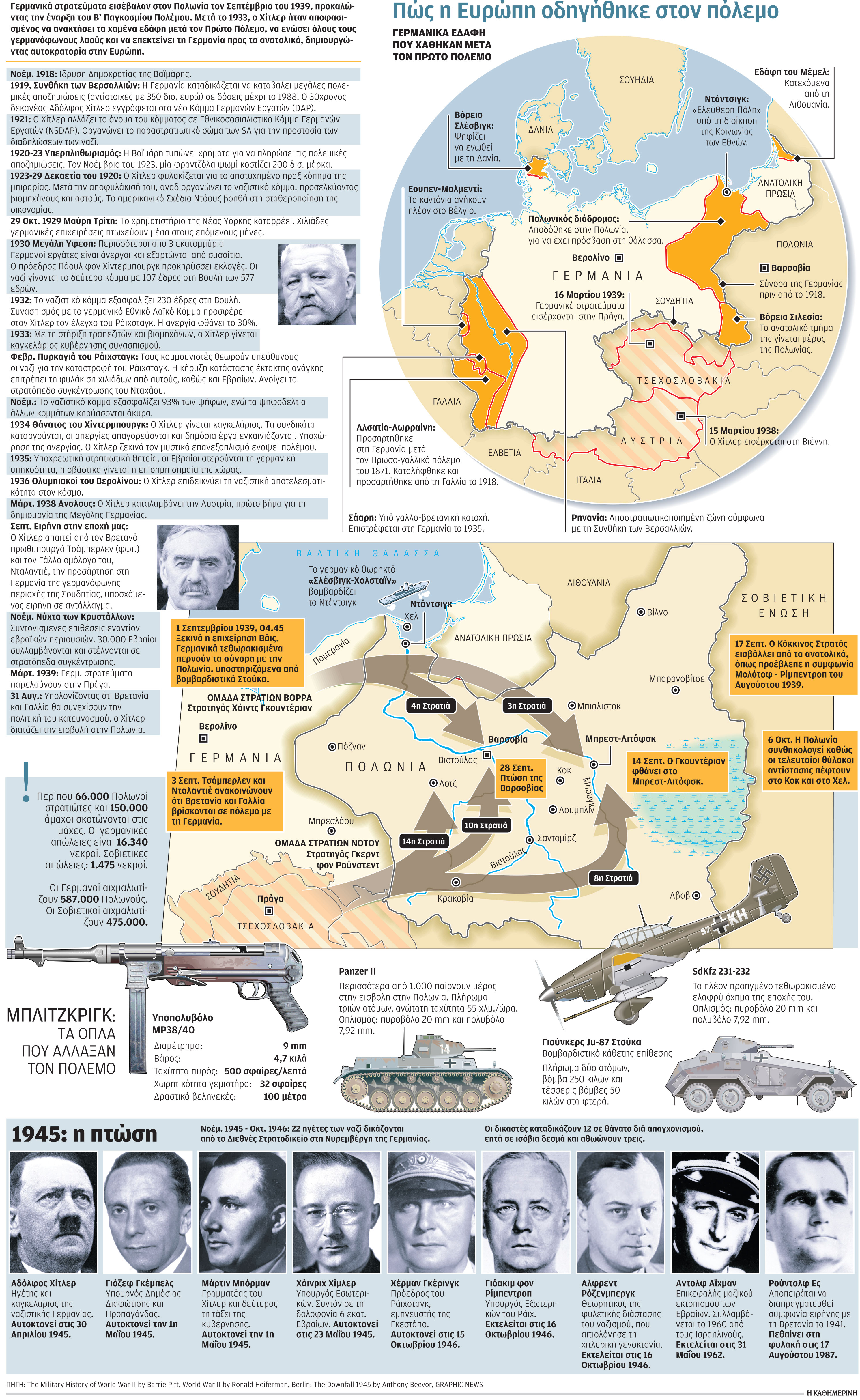 Η επιχείρηση «Βάις», που εξαπέλυσε το γερμανικό επιτελείο την 1η Σεπτεμβρίου 1939, αποσκοπούσε στην επίλυση της κρίσης του Ντάντσιγκ και στην επανένωση της Γερμανίας με τον θύλακο της Ανατολικής Πρωσίας. Την ίδια στιγμή, η εξαφάνιση της Πολωνίας ως έθνους επρόκειτο να συνοδευθεί με γενοκτονία των «φυλετικά ανεπιθύμητων» στοιχείων και με αδυσώπητη λαφυραγώγηση του πλούτου της χώρας. Το «ξεπούλημα» του Μονάχου έπεισε, τέλος, την ΕΣΣΔ ότι οι προσπάθειές της λίγους μήνες νωρίτερα για σύναψη συλλογικού μετώπου κοινής ασφάλειας και αμυντικής συνεργασίας με τη Γαλλία και τη Βρετανία δεν επρόκειτο να καρποφορήσουν και οδηγήθηκε στη σύναψη του κυνικού συμφώνου μη επίθεσης μεταξύ Βερολίνου και Μόσχας το 1939. Βεβαίως, τα πολιτικά σφάλματα του σταλινικού καθεστώτος, που αποψίλωσε κυριολεκτικά τα αξιότερα στελέχη του Κόκκινου Στρατού στις εκκαθαρίσεις του 1938, έπαιξαν κι αυτά τον ρόλο τους στο να ανοίξει ο δρόμος στη ναζιστική επεκτατικότητα.