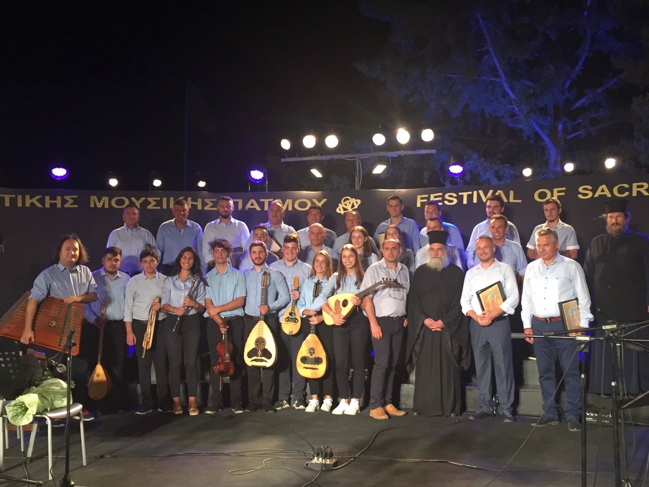 Στον κατάμεστο υπαίθριο συναυλιακό χώρο, μπροστά από το Ιερό Σπήλαιο της Αποκάλυψης, το μουσικό σχήμα της Σχολής της Ιεράς Μητροπόλεως Κίτρους εντυπωσίασε το κοινό με τον επαγγελματισμό του και την άρτια παρουσία του.