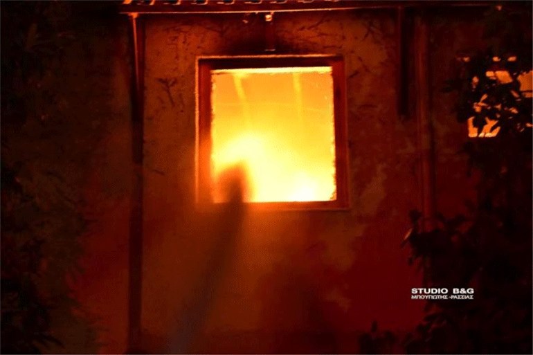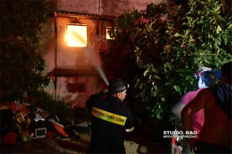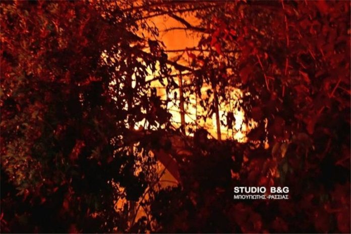 Ολοσχερώς κάηκε διώροφη μονοκατοικία στο χωριό Ηραίο του Δήμου Ναυπλιέων στην Αργολίδα το βράδυ της Τρίτης.