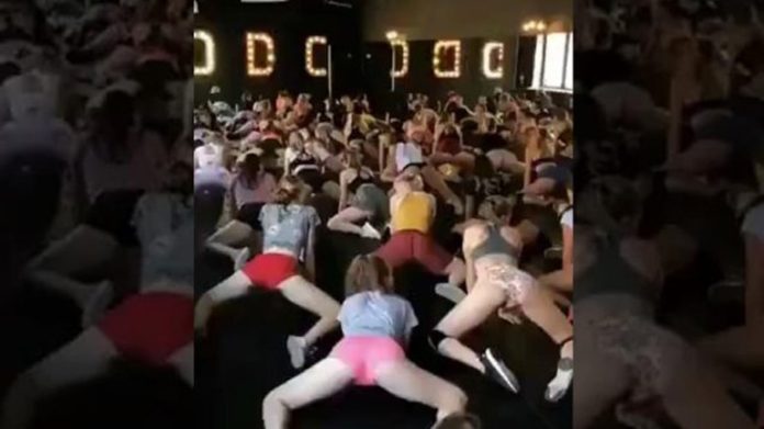 Στο βίντεο που ακολουθεί δεκάδες γυναίκες σε μία σχολή χορού μαθαίνουν πώς να κάνουν twerk…