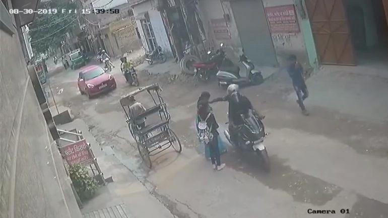 Σε ένα δρόμο της Ινδίας δύο κλέφτες πάνω σε μηχανή κλέβουν μια γυναίκα. Οι γυναίκες καταφέρνουν να τους σταματήσουν και στη συνέχεια ακολούθησαν οι περαστικοί που του έδωσαν ένα καλό μάθημα.