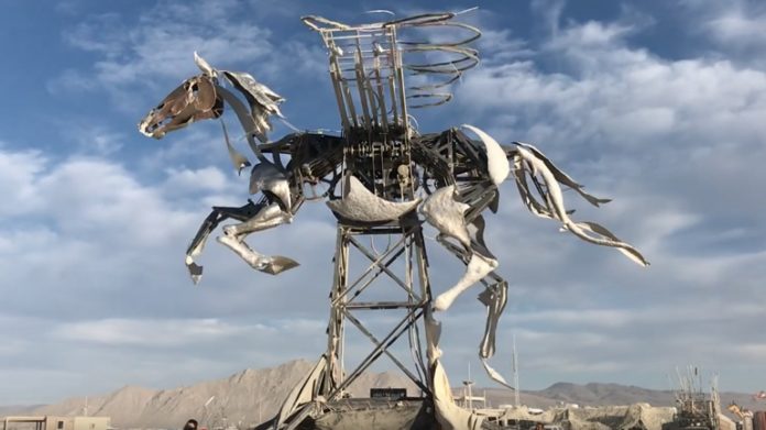 Ο Πήγασος, το φτερωτό άλογο της Ελληνικής Μυθολογίας, παρουσιάστηκε σε κινητικό γλυπτό στο φεστιβάλ Burning Man στη Νεβάδα των Ηνωμένων Πολιτειών.