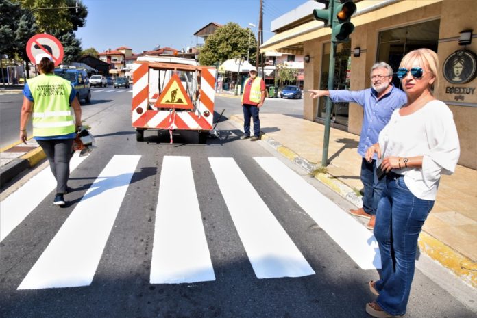 Παρεμβάσεις επαναδιαγράμμισης διαβάσεων πεζών στο οδικό δίκτυο αρμοδιότητας της Περιφερειακής Ενότητας Πιερίας επιθεώρησε η Αντιπεριφερειάρχης Πιερίας Σοφία Μαυρίδου, με τον Αναπληρωτή Προϊστάμενο της Υποδιεύθυνσης Τεχνικών Έργων της Περιφερειακής Ενότητας Πιερίας Παναγιώτη Μαυρίδη.