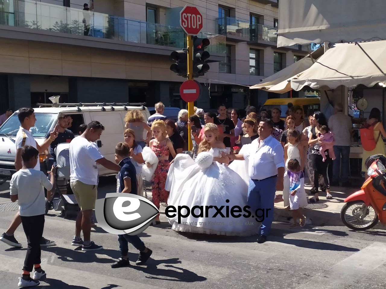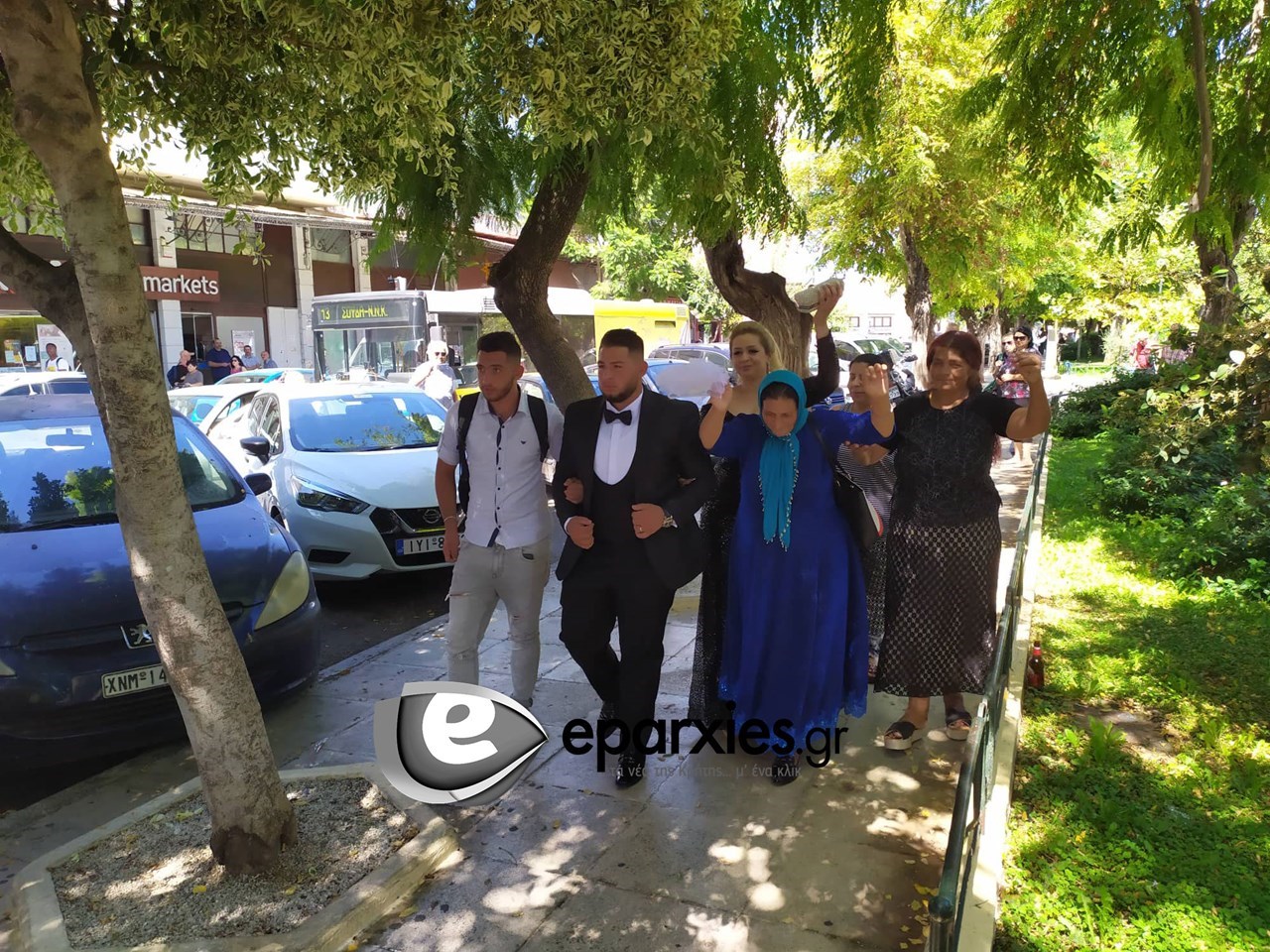 Ο γαμπρός στεκόταν από τη μία πλευρά του δρόμου με την οικογένειά του και απέναντι βρισκόταν η νύφη με το εντυπωσιακό νυφικό. Όταν το ευτυχισμένο ζευγάρι συναντήθηκε, ξεκίνησε το γλέντι που συνεχίστηκε στους δρόμους της πόλης.