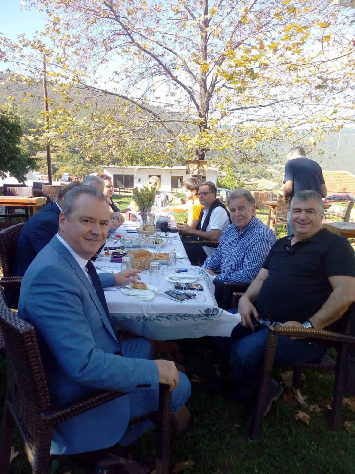 Επίσκεψη στο Ελατοχώρι και το φθινοπωρινό τοπίο των Πιερίων πραγματοποίησαν οι εκπρόσωποι των αδελφοποιημένων Δήμων με την Κατερίνη, Maintal Γερμανίας και Moosburg Αυστρίας, στο πλαίσιο της επίσκεψής τους στον δήμο μας για τον εορτασμό των 107 ετών από την απελευθέρωση της πόλης. Ο Δήμαρχος Κατερίνης Κώστας Κουκοδήμος και ο Αντιδήμαρχος Υπηρεσίας Δόμησης & ΤουρισμούΓιώργος Νταντάμης συνόδευσαν τον Δήμαρχο του Δ. MoosburgHerbertGaggl, την αντιπρόεδρο του δημοτικού συμβουλίου του Δ.MaintalJenniferGutberlet και τα υπόλοιπα μέλη της αποστολής στην ξενάγηση στα Πιέρια που «μάγεψε» τους επισκέπτες.
