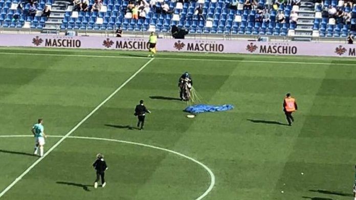 Σασουόλο-Ίντερ: Προσγειώθηκε με αλεξίπτωτο στο γήπεδο την ώρα του αγώνα!