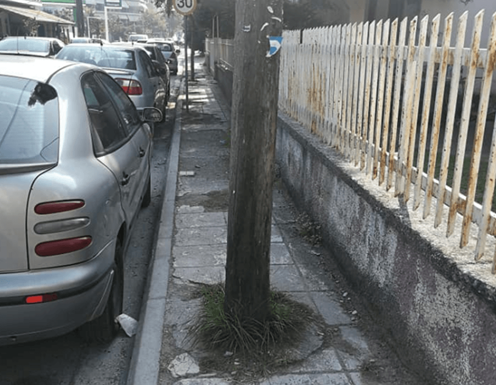 Αν είσαι μαμά με καρότσι η ΑΜΕΑ δεν υπάρχει περίπτωση να μπορέσεις να περάσεις από αυτό το πεζοδρόμιο.. Αναγκάζεσαι να κατέβεις στον δρόμο με μεγάλο κίνδυνο βέβαια αφού ο συγκεκριμένος δρόμος είναι κεντρικότατος (Οδός Φαρμάκη).