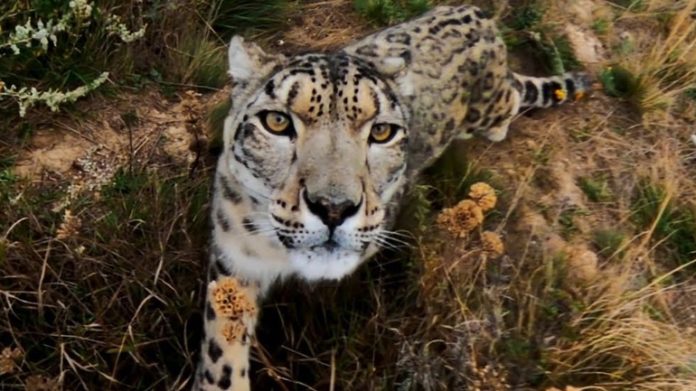 Μια λεοπάρδαλη του χιονιού πλησιάζει με περιέργεια μια κάμερα GoPro που είναι εγκατεστημένη σε ένα βουνό της Κιργιζίας.