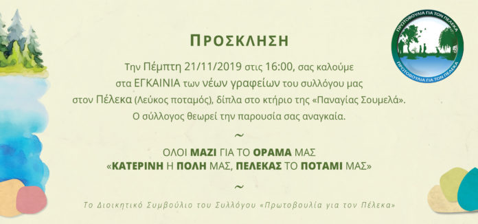 Πρόσκληση για τα εγκαίνια των γραφείων του συλλόγου Πρωτοβουλία για τον Πέλεκα
