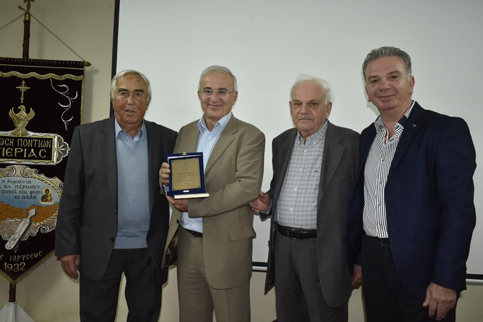 Την πλακέτα εκ μέρους του Δ. Σ. έδωσε ο Επίτιμος Πρόεδρος του συλλόγου κ. Μενέλαος Τερζόπουλος και ο επί σειρά ετών πρώην ταμίας του συλλόγου κ. Ισαάκ Ιορδανίδης.