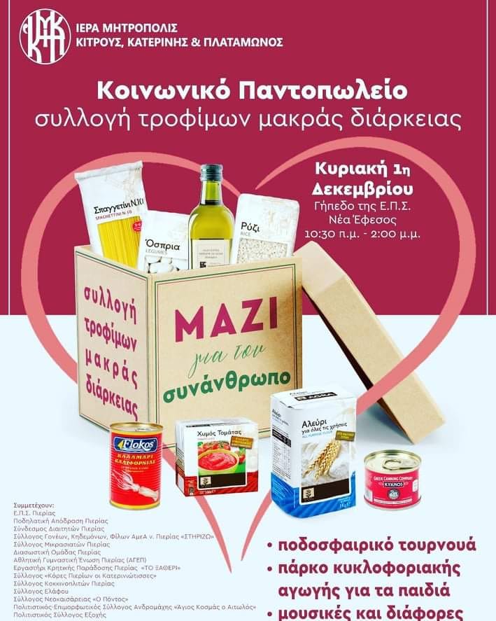 Η Ποδηλατική Από-Δραση Πιερίας συμμετέχει στις εκδηλώσεις της Ιεράς Μητρόπολης Κίτρους Κατερίνης & Πλαταμώνος, για τη συλλογή μακράς διαρκείας για το Κοινωνικό Παντοπωλείο.