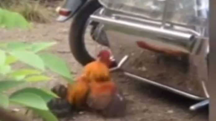 Κόκορας «πουλάει» τσαμπουκά σε μηχανή για δικούς του λόγους…