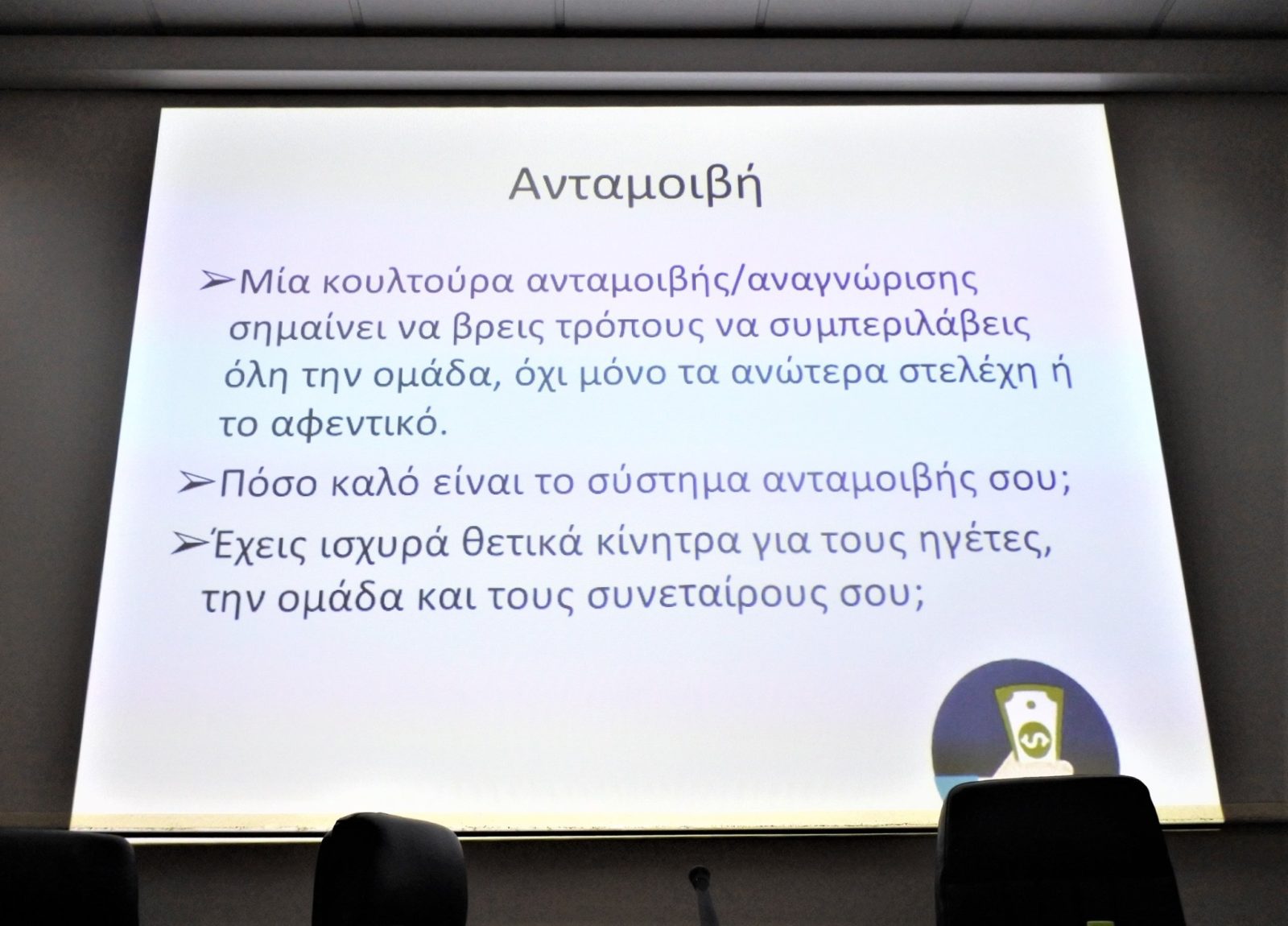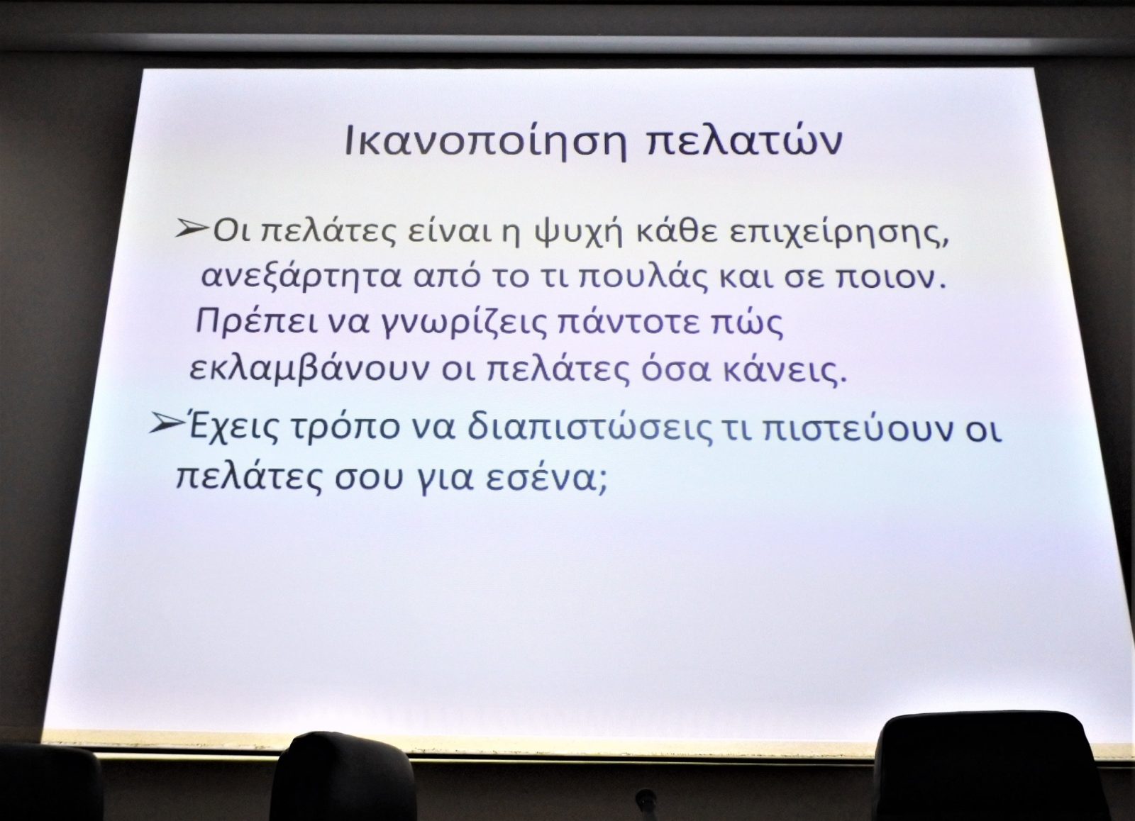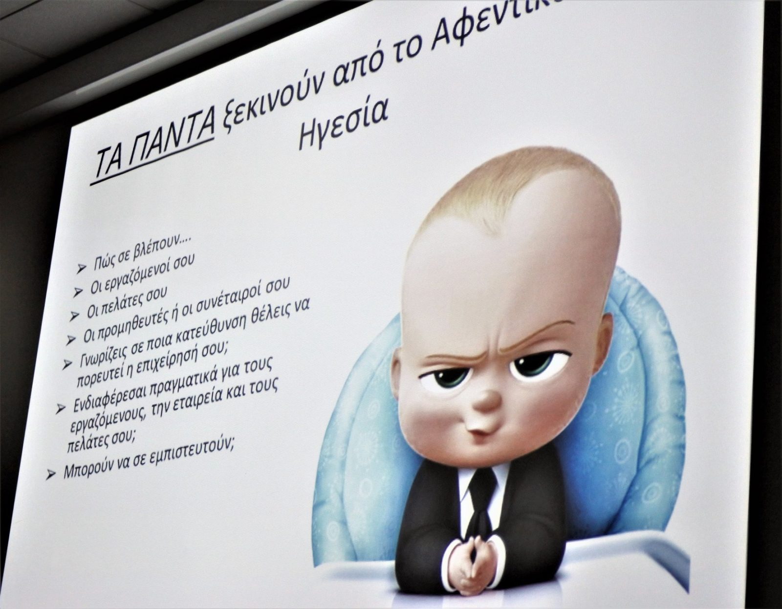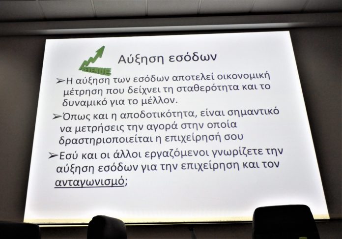 Με γλαφυρό τρόπο με πολλά παραδείγματα και βιωματικές εμπειρίες, κάνοντας ταυτόχρονα ερωτήσεις παρουσίασε όλη τη διαδικασία για να είναι μια επιχείρηση επιτυχημένη, όπως η αξιολόγηση της επιχείρησης και η ανακάλυψη των προβλημάτων της, η ανακάλυψη του στόχου, η κατεύθυνση, ο σκοπός, η αλλαγή εταιρικής κουλτούρας, η δημιουργία ελκυστικής εταιρικής κουλτούρας, η ηγεσία και η σχέση της με το ανθρώπινο δυναμικό της και τους πελάτες, το στρατηγικό σχέδιο και η στρατηγική ανάπτυξης, η κερδοφορία και αποδοτικότητα, η αύξηση εσόδων και η ικανοποίηση πελατών, η καινοτομία ως σημαντικός παράγοντας για την μελλοντική επιτυχία, η καινοτομία για αλληλεπίδραση των εργαζομένων και το σύστημα ανταμοιβής των επιχειρήσεων. Τονίζοντας ότι «σκοπός μιας επιχείρησης είναι να αποκτήσει και να κρατήσει πελάτες», απάντησε σε πολλές ερωτήσεις των παρευρισκομένων.