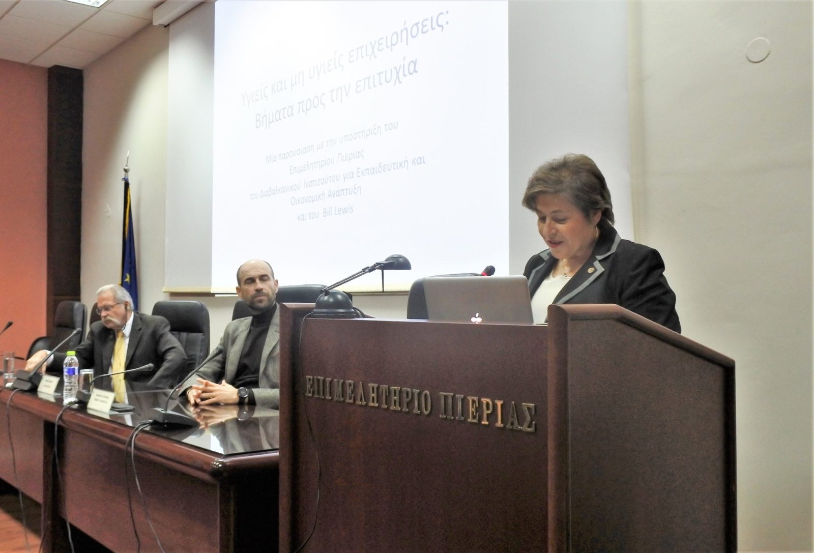 Μια εξαιρετικά ενδιαφέρουσα εσπερίδα, παρουσία πλήθους κόσμου πραγματοποιήθηκε το απόγευμα της Τετάρτης 27 Νοεμβρίου 2019 στο Επιμελητήριο Πιερίας, σε συνδιοργάνωση με το Διαβαλκανικό Ινστιτούτο για Εκπαιδευτική και Οικονομική Ανάπτυξη (Δ.Ι.Ε.Ο.Α.), και θέμα «Υγιείς και μη υγιείς επιχειρήσεις: Βήματα προς την επιτυχία» με ομιλητή τον διεθνούς φήμης σύμβουλο επιχειρήσεων και οργανισμών κ. Bill Lewis.