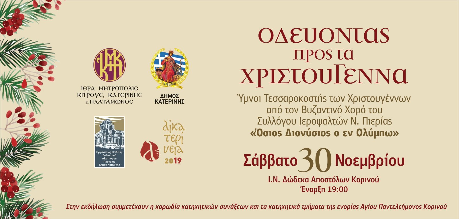 Με την συγκεκριμένη εκδήλωση ολοκληρώνεται το πρόγραμμα των «ΑΙΚΑΤΕΡΙΝΕΙΩΝ 2019».