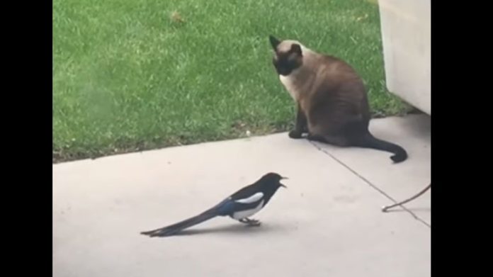 Καρακάξα «πουλάει» τσαμπουκά σε γάτα