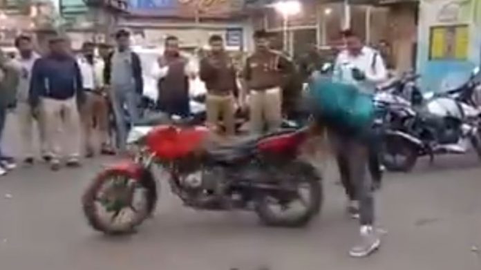 Ένας άντρας στο Μίρατ, της Ινδίας, ξέσπασε στη μηχανή του όταν «έφαγε» πρόστιμο επειδή δεν φορούσε κράνος.