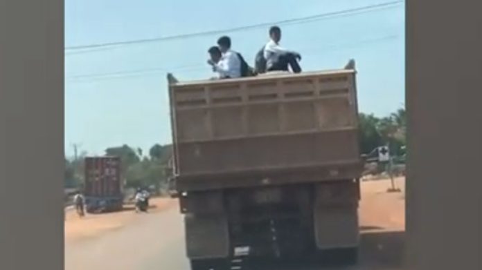 Ένας οδηγός στο Πνομ Πεν, της Καμπότζης, έμεινε άναυδος όταν είδε τέσσερα παιδιά να πηγαίνουν στο σχολείο με φορτηγό που κουβαλάει μπάζα.