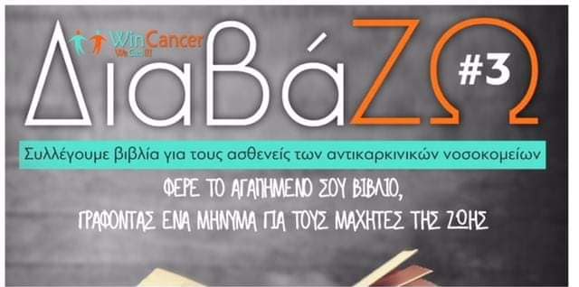 Ο Δήμος Δίου-Ολύμπου στηρίζει τη δράση του “Win Cancer ΔιαβάΖΩ #3” και σας καλεί στις 13 Δεκεμβρίου 2019 να προσφέρετε το αγαπημένο σας βιβλίο για ενηλίκους, γράφοντας τη δική σας ευχή, ως ένα δώρο αγάπης για τους συνανθρώπους μας που νοσηλεύονται σε αντικαρκινικά νοσοκομεία της χώρας μας την περίοδο των εορτών των Χριστουγέννων.
