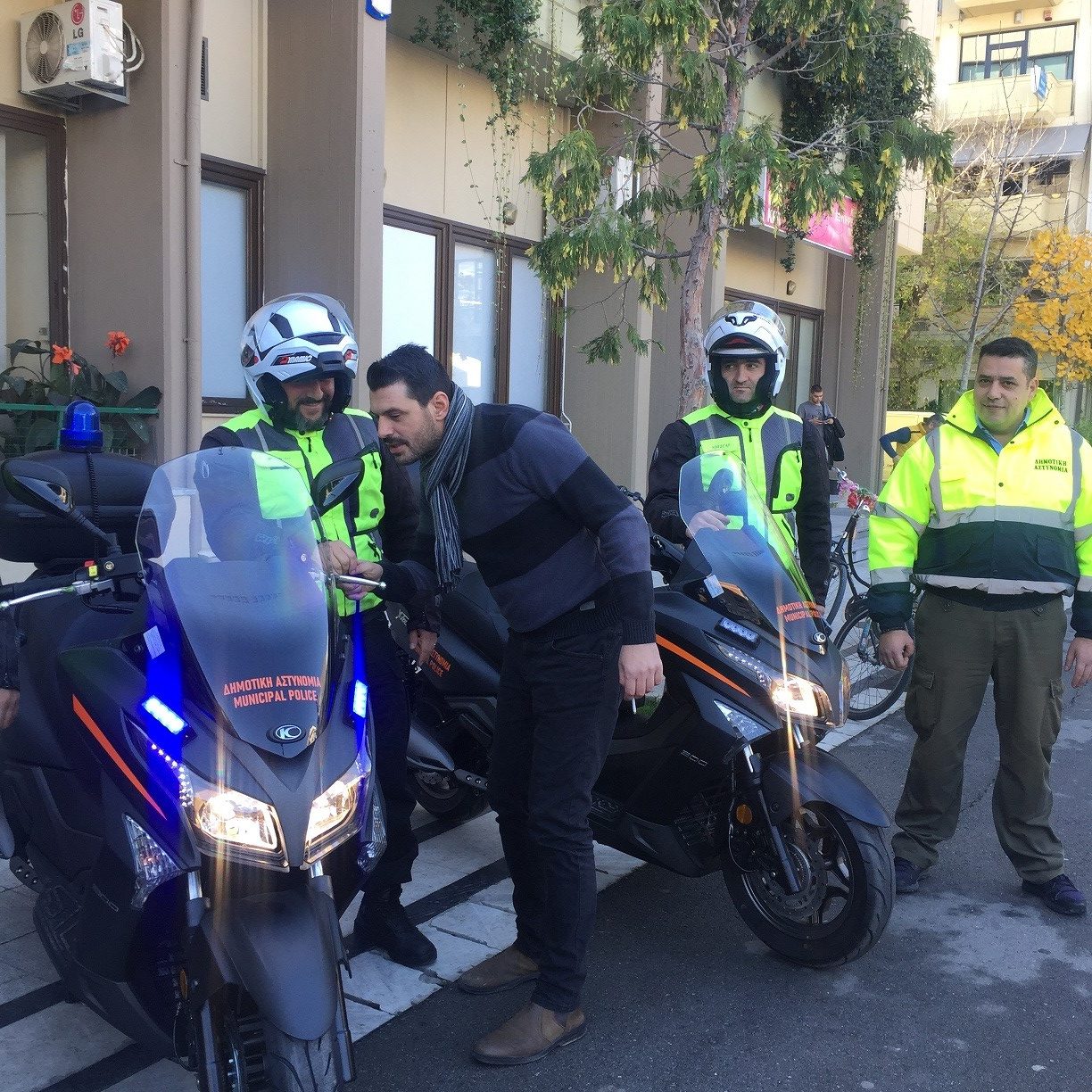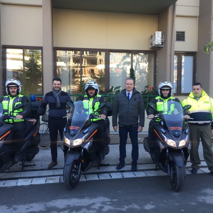 Στον εκσυγχρονισμό και την ενίσχυση του εξοπλισμού της Δημοτικής Αστυνομίας αναμένεται να συμβάλλουν οι τρεις μοτοσικλέτες- δωρεά των Δημοτικών Πάρκινγκ Κατερίνης, που παραδόθηκαν σήμερα προς χρήση στην υπηρεσία, παρουσία του Δημάρχου Κώστα Κουκοδήμου, του αρμόδιου αντιδήμαρχου Γιώργου Τσιαλού, του προέδρου των Δημοτικών Πάρκινγκ Νίκου Κατανά και υπηρεσιακών παραγόντων.