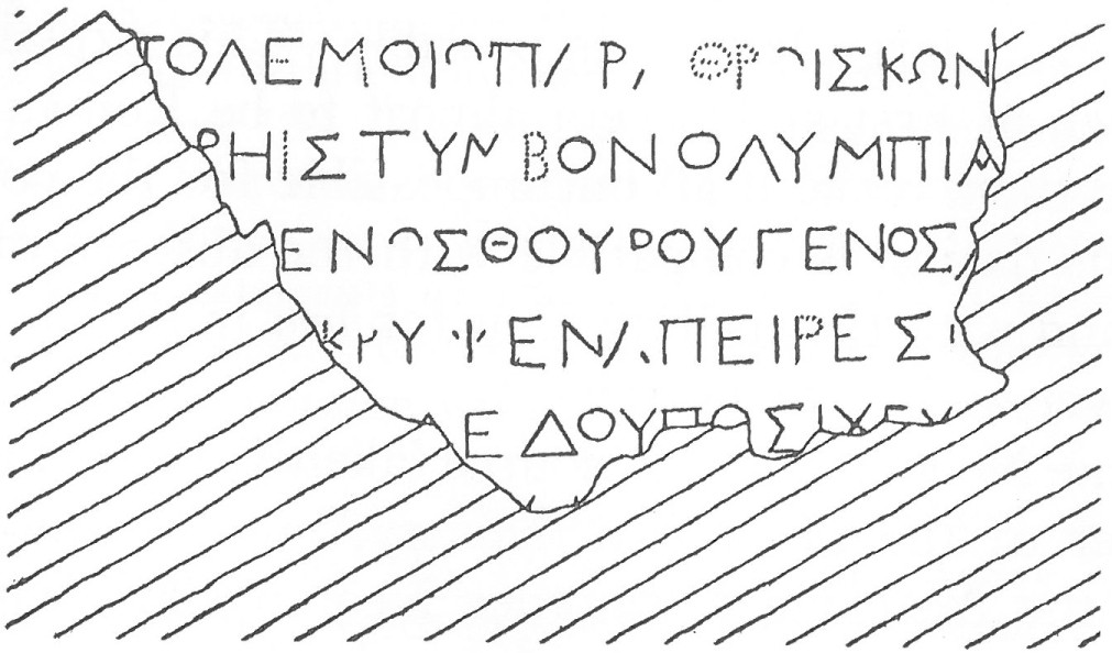 α) στην αρχαιολογική προσέγγιση με τις 3 περίφημες επιγραφές – επιτύμβια που αναφέρουν τον “ΤΥΜΒΟΝ ΟΛΥΜΠΙΑΔΟΣ” και των απογόνων της από τον βασιλικό οίκο της Ηπείρου, των ΑΙΑΚΙΔΩΝ, και