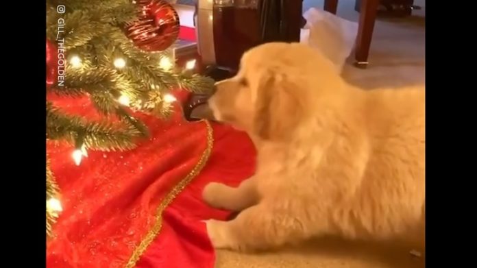 Παρ’ όλα αυτά, το μικρο γκόλντεν ριτρίβερ του βίντεο καταφέρνει να κλέψει την παράσταση, αφού ακόμα και όταν επιτίθεται στο χριστουγεννιάτικο δέντρο είναι το πιο αξιαγάπητο κουτάβι στον κόσμο.