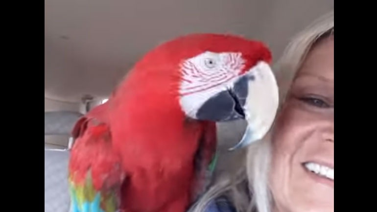 Πρόκειται για έναν πανέμορφο παπαγάλο μακάο που λατρεύει τις βόλτες με το αυτοκίνητο και κάθε φορά που ακούει μουσική αρχίζει τον χορό.
