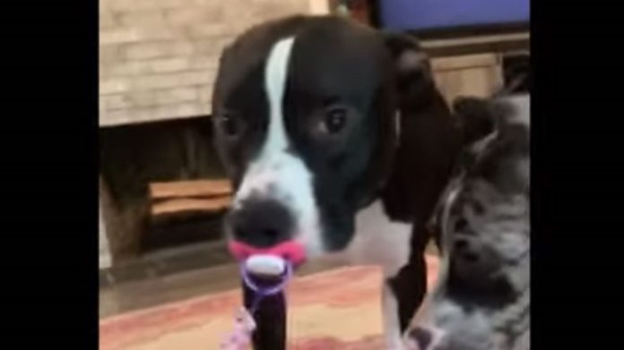Ζηλιάρης σκύλος έκλεψε την πιπίλα μωρού και δεν την αποχωρίζεται