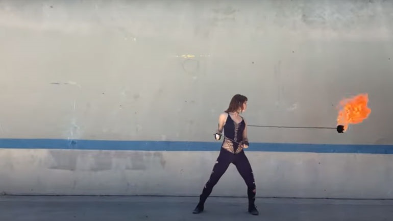 Γυναίκα χορεύει με μια φλεγόμενη σφαίρα και κόβει την ανάσα