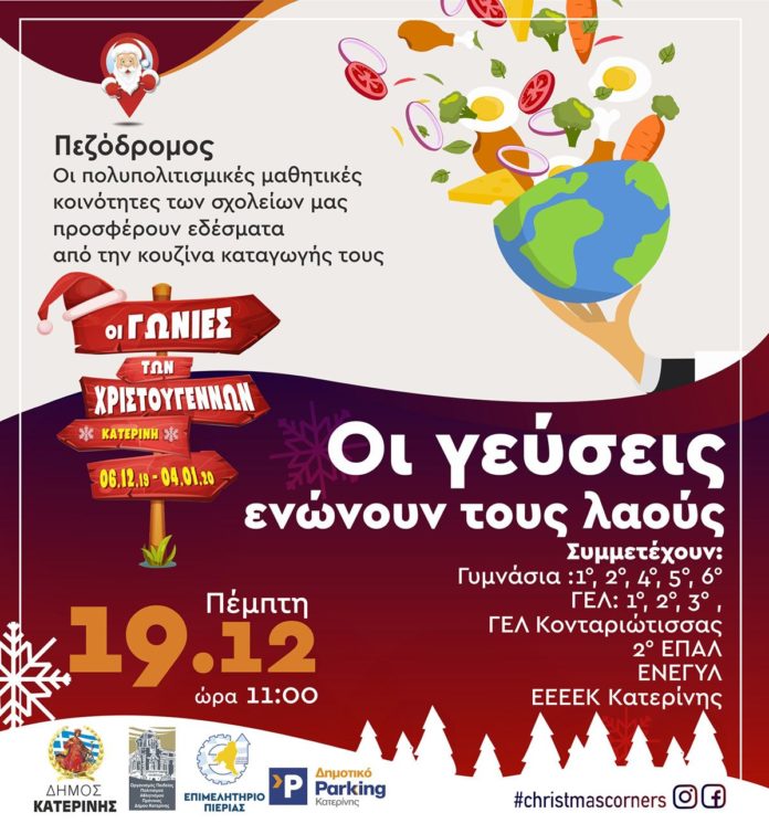 Εξάλλου, αύριο στις 11 το πρωί στον πεζόδρομο, οι πολυπολιτισμικές μαθητικές κοινότητες των σχολείων μας παρουσιάζουν την διατροφική τους κουλτούρα προσφέροντας στην κοινωνία της πόλης εδέσματα από την κουζίνα καταγωγής τους αποδεικνύοντας έτσι ότι «Οι γεύσεις ενώνουν τους λαούς».