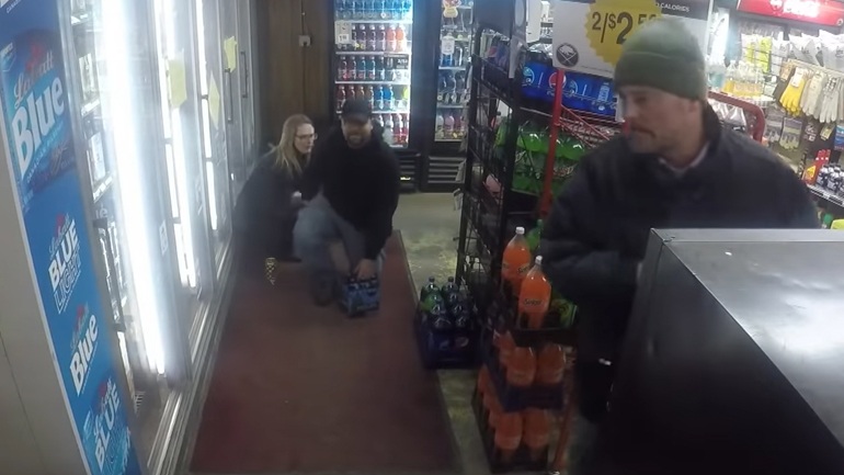 Η κάμερα ασφαλείας καταγράφει τον “ληστή” να τραβάει όπλο στον υπάλληλο του καταστήματος και να φωνάζει ληστεία.