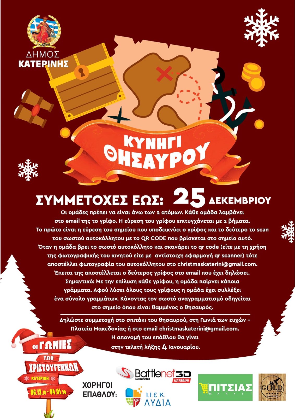 Δηλώστε συμμετοχή στο σπιτάκι του Θησαυρού στη Γωνιά των Ευχών (πλατεία Μακεδονίας) ή στο email: christmaskaterini@gmail.com