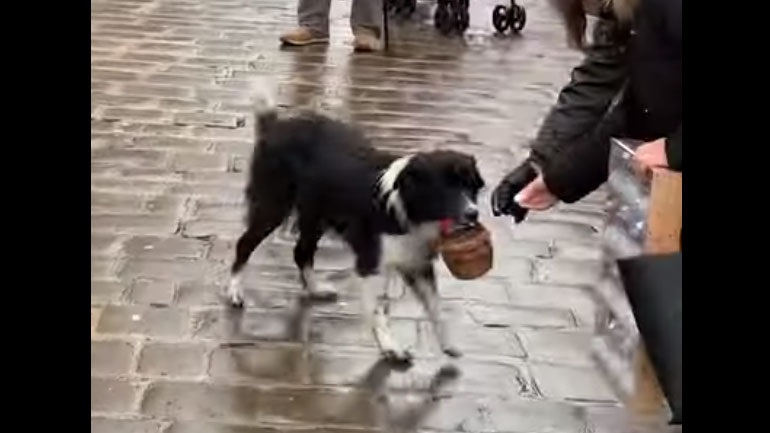 Το ευφυές σκυλί κάνει δεκάδες κόλπα και καταφέρνει να κλέψει την καρδιά των περαστικών που αδυνατούν να αντισταθούν και του δίνουν λεφτά και χάδια.