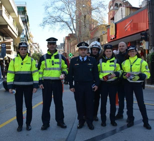 Άντρες και γυναίκες της Τροχαίας Κατερίνης μοίρασαν γλυκά και ενημερωτικά φυλλάδια στους οδηγούς παράλληλα με τις ευχές τους για καλές γιορτές και ευτυχισμένο το νέο έτος.