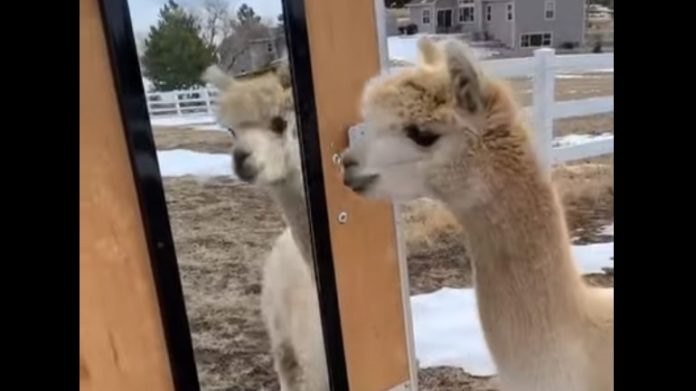 Αλπακά μπερδεύεται όταν βλέπει τον εαυτό του στον καθρέφτη