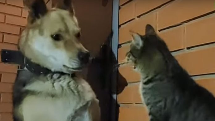 Αντιπάθεια με την… πρώτη ματιά ένιωσε η γάτα του βίντεο όταν την πλησίασε ένας σκύλος, με αποτέλεσμα να ξυπνήσει ο μποξέρ μέσα της και να του ρίξει μερικές «καλές» πριν εκείνος καταλάβει τι γίνεται.